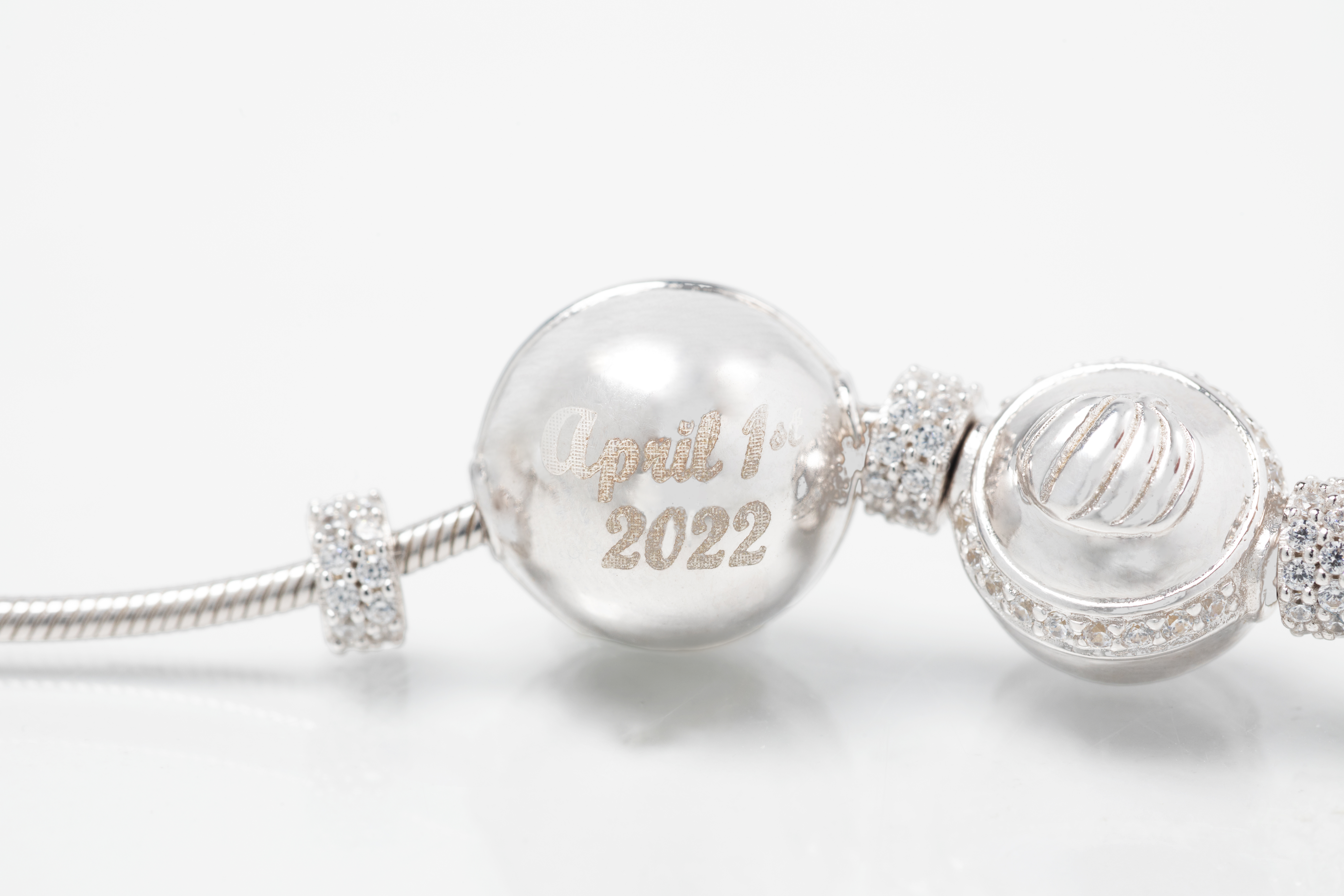 When your baby arrives, you’ll receive a custom engraved charm with their name and birthdate.